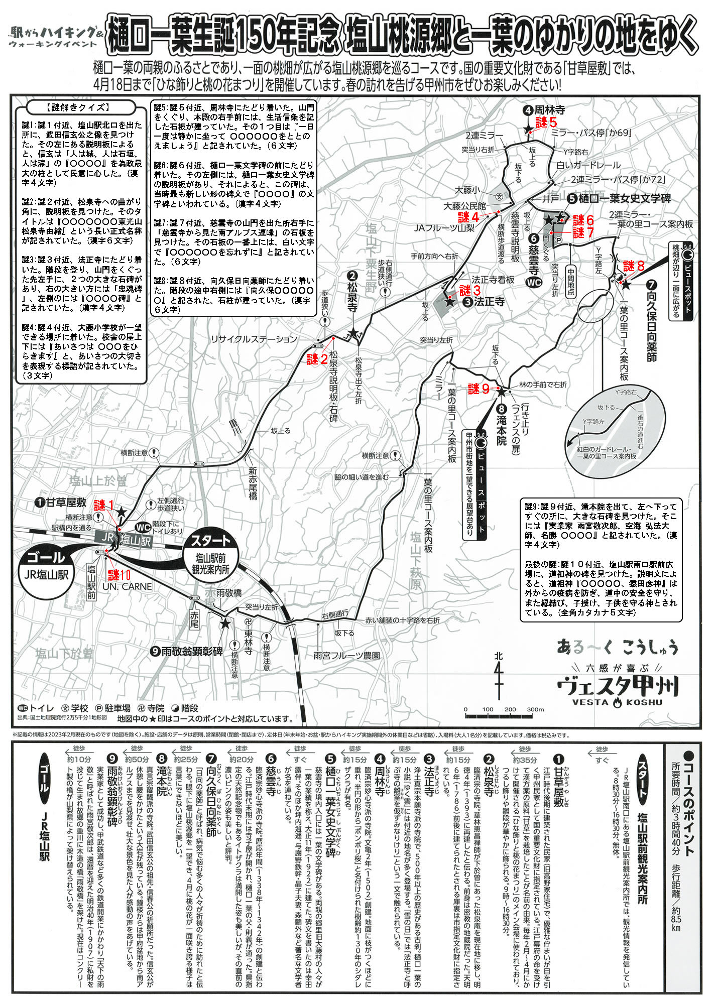 あなたがクリックした謎問題:『地図の謎6付近、樋口一葉文学碑の前にたどり着いた。その左側には、樋口一葉女史文学碑の説明板があり、それによると、この碑は、当時最も新しい形の碑文で『○○○○』の文学碑といわれている。(漢字4文字)』