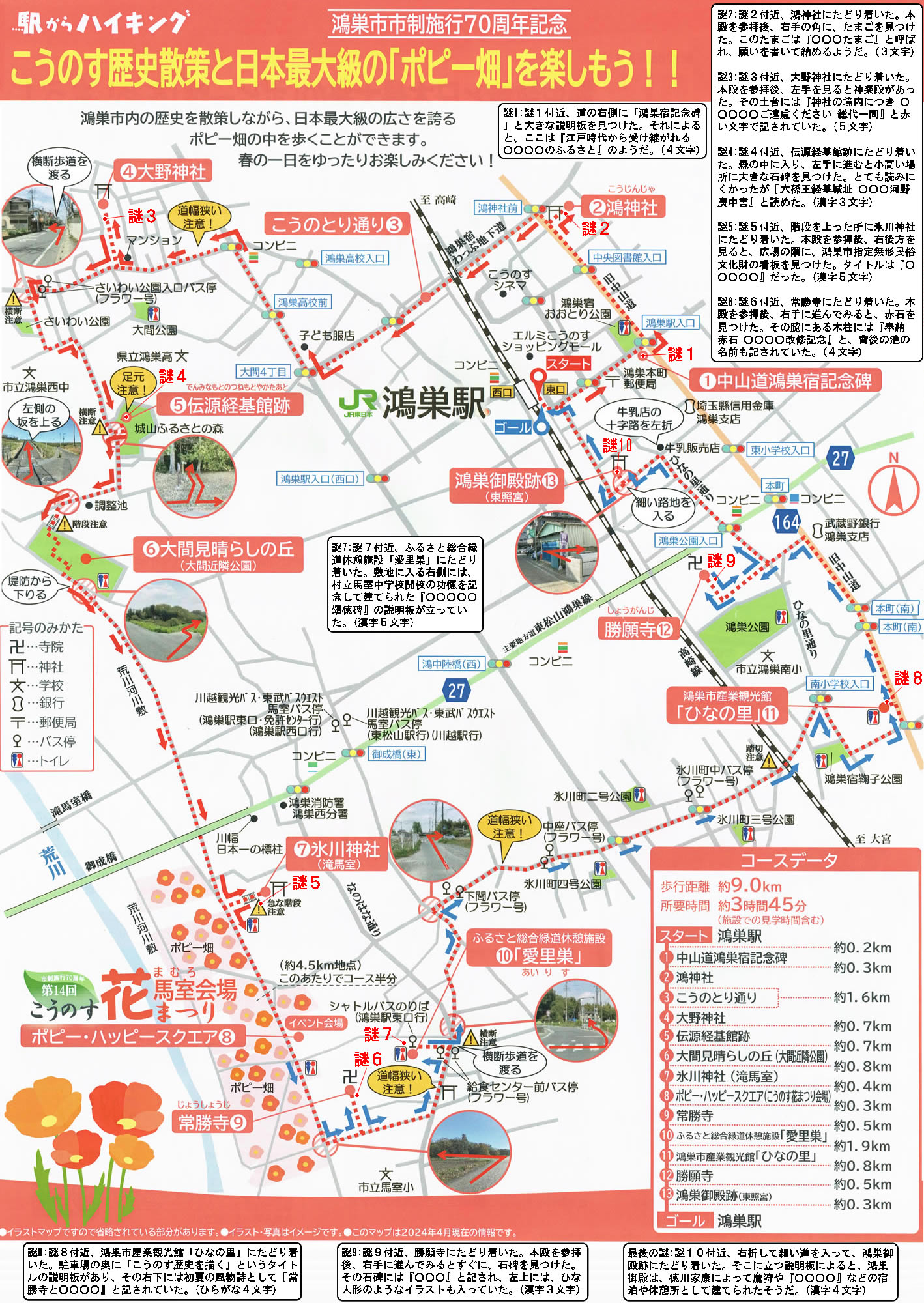 謎1:地図の謎1付近、道の右側に「鴻巣宿記念碑」と大きな説明板を見つけた。それによると、ここは『江戸時代から受け継がれる ○○○○のふるさと』のようだ。(4文字)