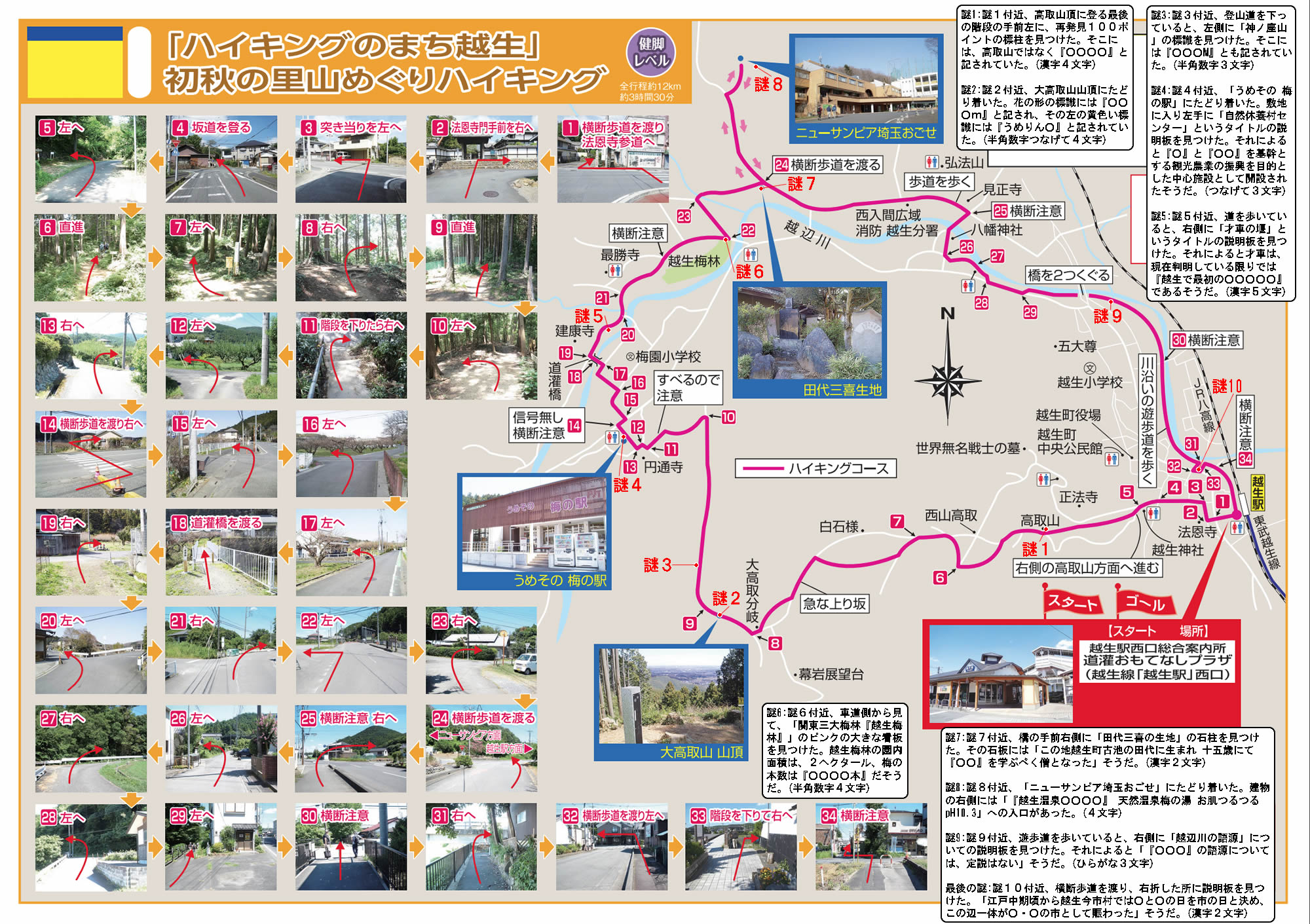 謎1:地図の謎1付近、高取山頂に登る最後の階段の手前左に、再発見100ポイントの標柱を見つけた。そこには、高取山ではなく『○○○○』と記されていた。(漢字4文字)