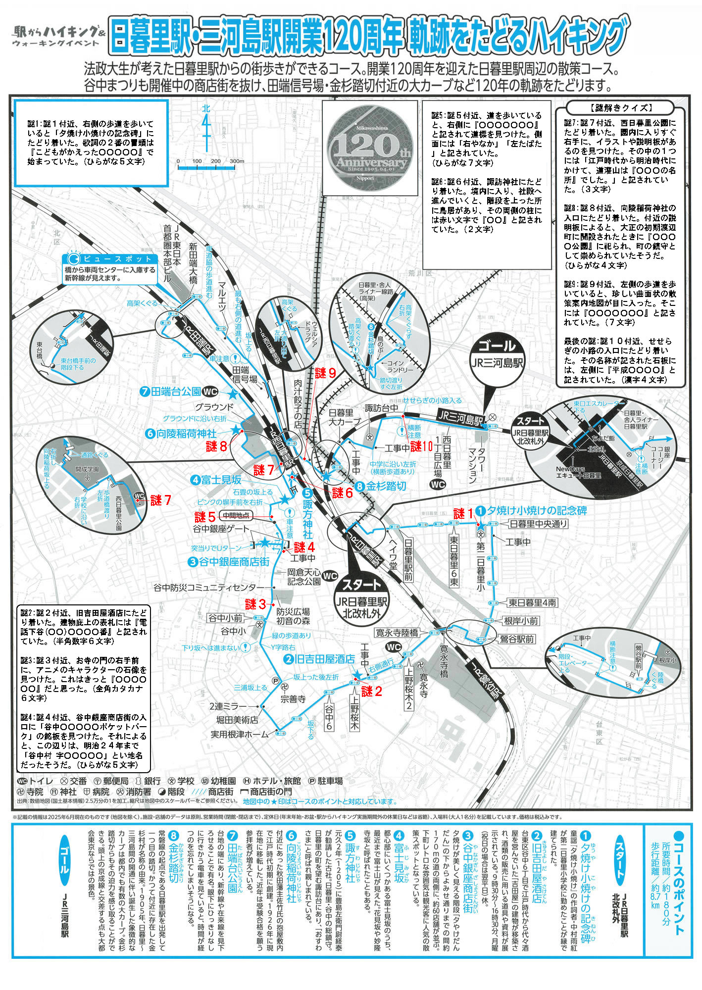 謎1:地図の謎1付近、右側の歩道を歩いていると「夕焼け小焼けの記念碑」にたどり着いた。歌詞の2番の冒頭は『こどもがかえった○○○○○』で始まっていた。(ひらがな5文字)