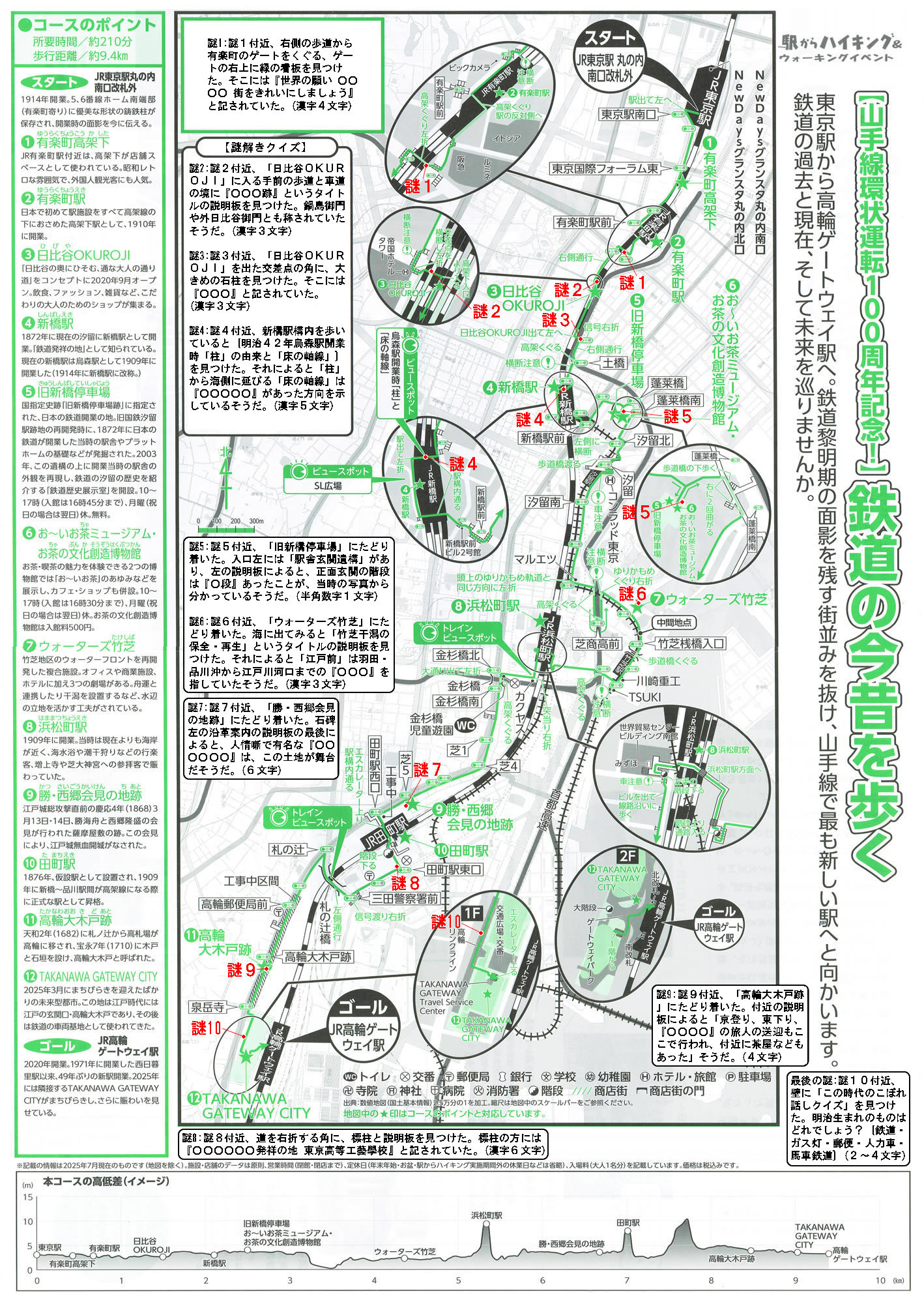 謎1:地図の謎1付近、右側の歩道から有楽町のゲートをくぐる、ゲートの右上に緑の看板を見つけた。そこには『世界の願い ○○○○ 街をきれいにしましょう』と記されていた。(漢字4文字)